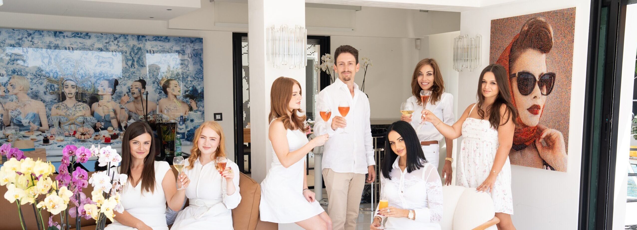 Arianna Gorla, Caroline Olds and Hanna-Maija Huhtanen from Caroline Olds Real Estate sitting on a Patio in Monaco