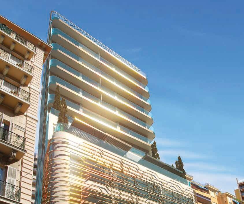 The residence incorporates expansive sliding windows designed to maximise natural light throughout the apartments. This architectural feature enhances interior brightness while framing views over the Condamine district and Port Hercule. The use of light-toned materials and generous glazing contributes to the building’s contemporary residential character.